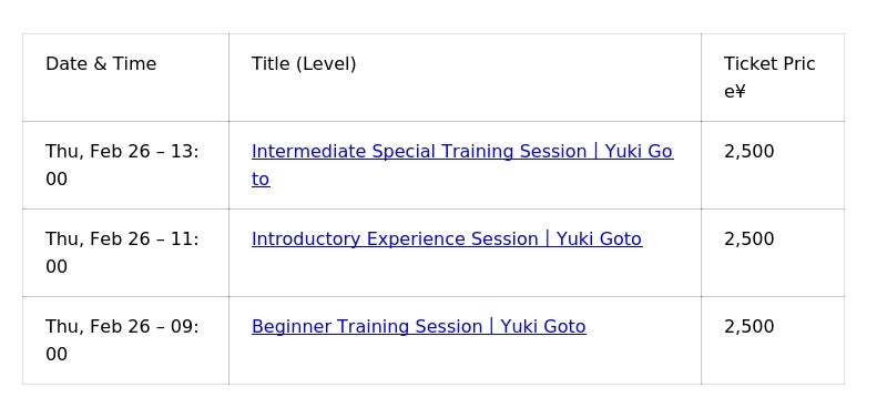 【リリース概要|後藤 由希 選手による 初心・初級・中級 練習会】