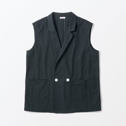 ワッシャー加工によるドライな風合いと、強いシャリ感が特長のスリーブレスジャケットです。スリーブレスデザインのため、季節を問わずさまざまなレイヤードスタイルが楽しめます。合わせるアイテム次第で、カジュアルからフォーマルまで幅広いシーンで活躍する1着です。