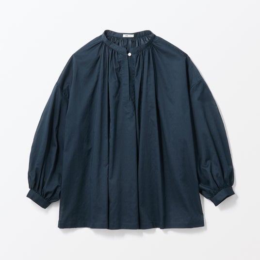 綿100%の細い糸で織り上げた薄手で柔らかな生地を使用し、さらりとした肌触りが特長の軽やかで上質な印象を与えるブラウスです。襟元の小さなボタンがアクセントになっています。さらっと1枚で着るのはもちろん、レイヤードスタイルでも、幅広いコーディネートが楽しめます。