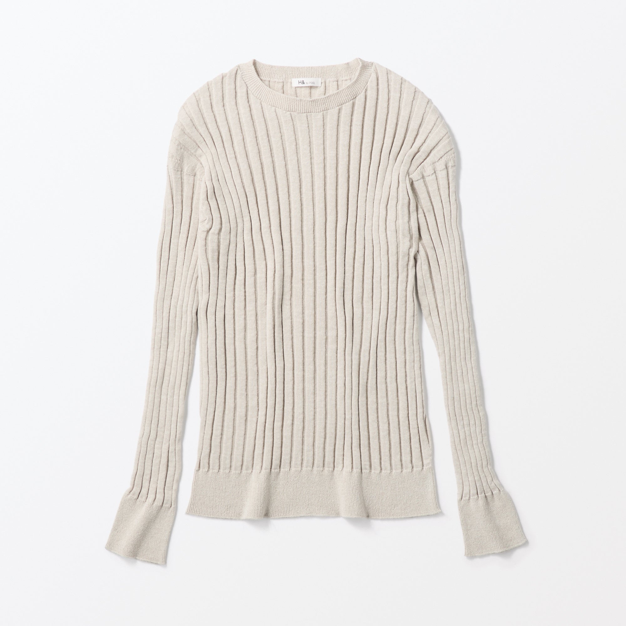 「POOL」のプロジェクトを始めてから幾年か経ち、日本を見渡してみたときにものづくりの生産地では質の良い素材が少しずつ工場に残っていることが見えてきました。それらは工場で製造できる数量の都合や、ほんの少しの色の違い、予期せぬオーダーキャンセルなど、さまざまな都合で行き場をなくした素材です。「POOL」では、その素材をつくる作り手の技術の高さをもっとたくさんの人に知ってもらうべきと考え、2021年秋に「H& by POOL」の取り組みを開始しました。