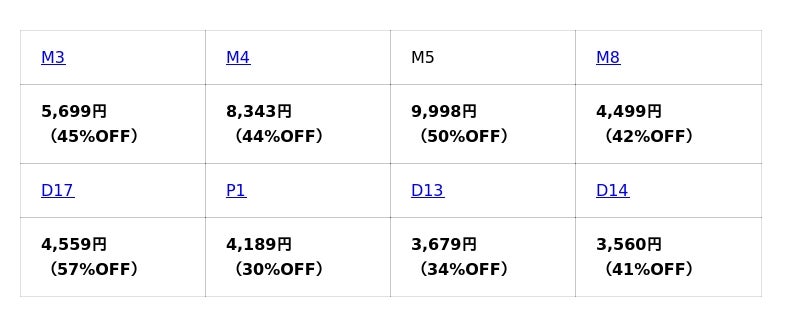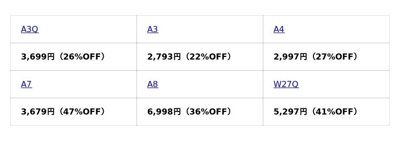 (※)商品名をクリックすると、各商品の販売ページへアクセスできます。