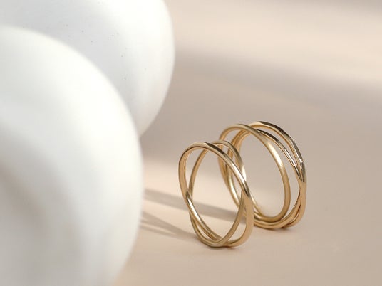 Layered連なる地金のラインが描く、心地よい反復とボリューム感。ひとつ着けるだけで洗練された手元が完成し、重なり合う輝きが優雅なリズムを刻みます。