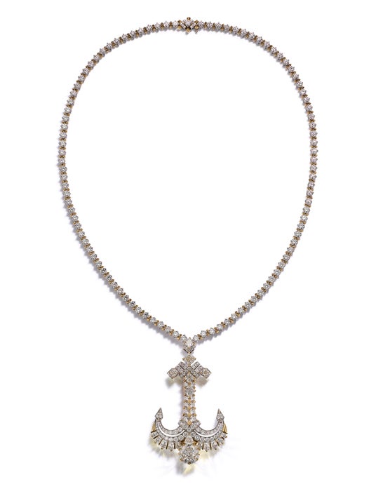 「アンカー」の章では、1939年にジャン・シュランバージェが手掛けた、力強さと均整のとれたデザインが象徴的な、ルビー、アメシスト、ピンク サファイヤによるブローチを再解釈しています。新作のペンダント、リング、ブレスレットには中央にクッション カットのダイヤモンドを配し、伝統的な錨の構造や幾何学的なフォルムがもたらすバランス感を、モダンなデザインへと昇華しています。ペンダントは、プラチナと18Kゴールドに2カラットを超えるダイヤモンド、リングには5カラットを超えるダイヤモンド、そしてブレスレットには1カラットのダイヤモンドがあしらわれ、それらを囲む繊細なダイヤモンドが華やかさを添え、センターストーンの光輝くクオリティを一層引き立てます。