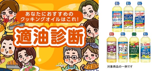 日清オイリオグループ株式会社(社長:久野 貴久)は、さまざまなクッキングオイルの特長をお伝えし、お客さまの関心や好みに合った商品を紹介するインタラクティブ動画コンテンツ「適油診断」を当社公式ホームページなどで公開しました。公開に合わせて、対象商品の購入レシートで応募いただける「適油診断でQUOカードPayが当たる!キャンペーン」を2025年11月4日(火)から実施します。