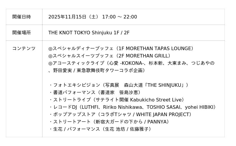 ■ THE KNOT TOKYO Shinjuku「THE KNOT FES」概要