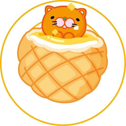 寝冷えネコ「きよニャ」のパンバージョンのデザインを、「きよらの卵メロンパン」に使用しています。メロンパンのおふとんにくるまった、「きよニャ」がカスタードクリームの中でぬくぬくしている様子はファン必見の限定デザインです。
