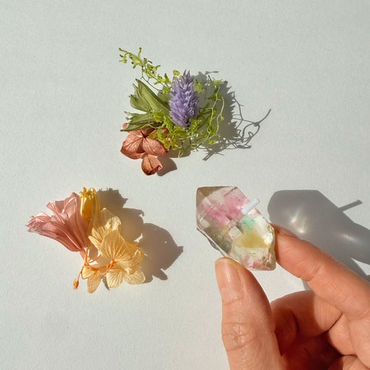 鉱物型のジェルキャンドルとドライフラワーは、お菓子を食べた後も飾って楽しむことができる