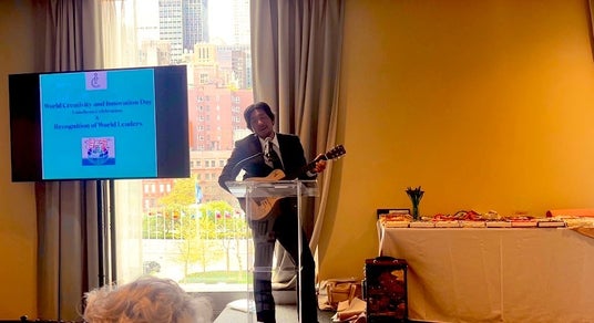国際連合本部でPEACE SONGを披露する中村雄一代表