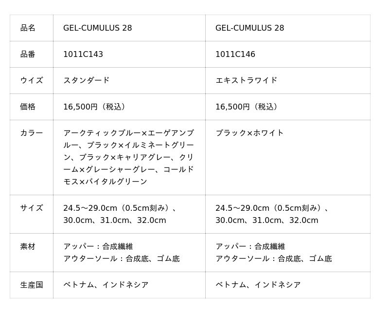今回発売する商品は、クッション性と軽量性のバランスを追求した「GEL-CUMULUS」シリーズの最新作です。前モデルに比べ、適度な反発性を加えることで、より軽やかな走行感を提供しています。