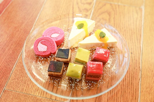 ・中段:ドルチェ(レアチーズケーキ/ベリーロールケーキ/オペラ/ピスタチオケーキ/ザクロケーキ)