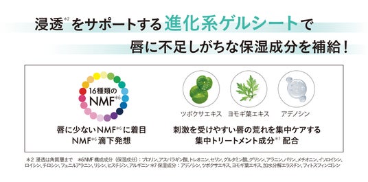 唇の温度に反応するスキンモイスチャーハイドロゲルを採用し、美容成分がゆっくり溶け出して浸透※5していきます。