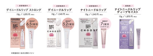 株式会社サン・スマイル(本社:東京都港区/代表取締役社長:田中徳也)は「ワタシ史上、最高※4の唇へ」がコンセプトのリップケアブランド「CHOOSY(チューシー)」より、「ナイトニードルリップ」と集中トリートメントタイプの「リップパック」の1回分がセットになったスペシャルケアセット『ニードル&パック ワンデイ スペシャル』を数量限定で発売いたします。