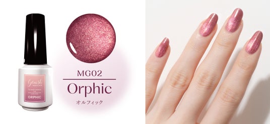 「Orphic Veil of Night(オルフィック ヴェール オブ ナイト)」は、夜の世界に光を放ち続け、揺れ動くヴェールの様なオーロラをイメージ。昔から人々を魅了してきた神秘的なオーロラのように、心奪われる世界観を指先に落とし込んだジーニッシュのマグネットネイルシリーズです。