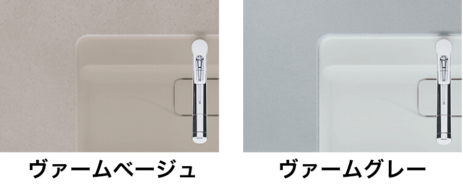 ■既存の家具やインテリアと調和し 上質さをもたらす、新色カウンター・扉● 焼き物を思わせる、柔らかさと温かみ。人造大理石カウンター「ヴァームグラーナ」