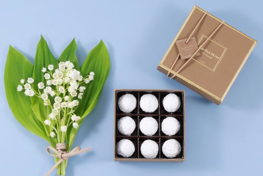 スズランをイメージした期間限定の白いトリュフを9個詰合せ。4個、6個の詰合せもご用意しています。
