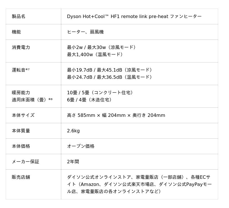 ダイソン株式会社(東京都千代田区:代表取締役社長 添田 成久、以下ダイソン)は、ヒーター、扇風機として1台2役で活躍する、脱衣所などの狭い部屋にも最適なコンパクトサイズの「Dyson Hot+Cool(TM) HF1 remote link pre-heat(ダイソン ホットアンドクール エイチエフワン リモート リンク プレヒート)ファンヒーター」を、2025年11月4日(火)より、ダイソン公式オンラインストア、家電量販店などで順次販売を開始します。