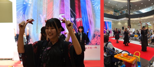 イオンモール福岡での開催は今回で5回目。毎回進化を続ける本イベントでは、「地域」「地元密着」をテーマに、会場ならではのプログラムを多数実施。特に今回の見どころは、地元福岡ならではの「よさこい」をとりあげたaxes femmeスタッフによるパフォーマンス。鳴子の音と明るい掛け声が会場に響き渡り、来場者の大きな拍手と笑顔に包まれました。