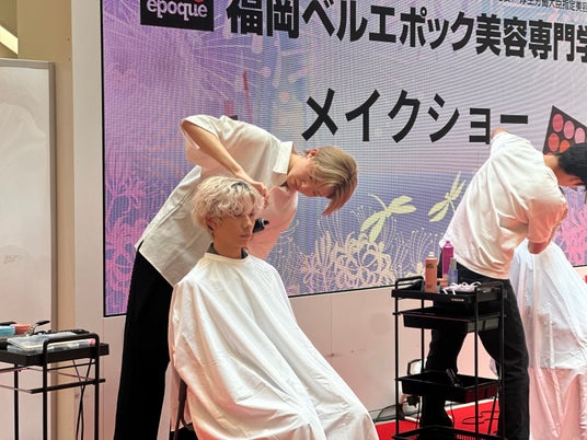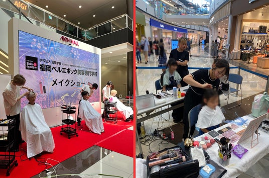 毎回好評のヘアメイク体験ブースに加え、今回はステージ上でのメイクショーを開催。