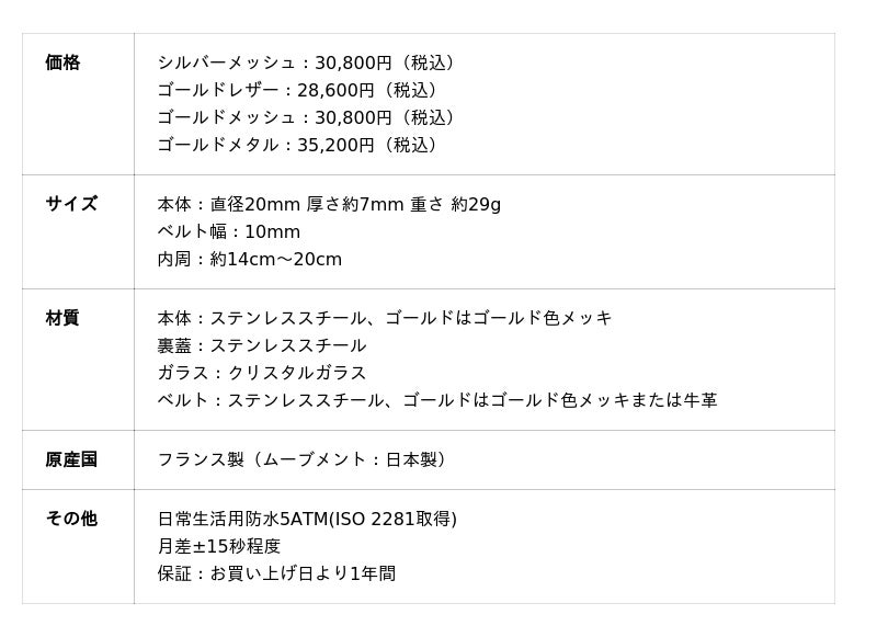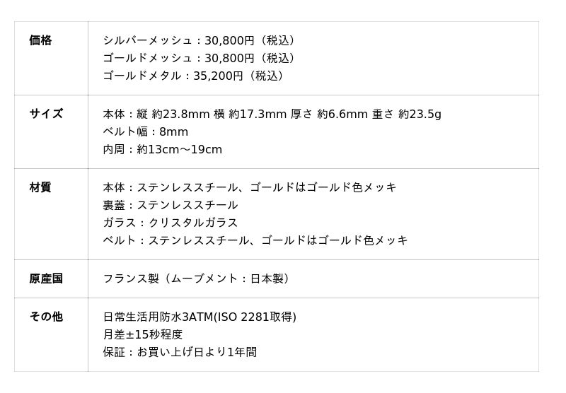 小さなケースサイズと華奢なベルトが特徴で、