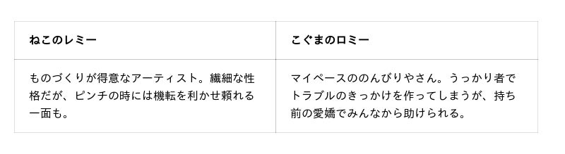 『ねこのレミーとこぐまのロミー ふたりのおみせやさん」』ここは、たくさんの電車や人々が行き交う「かしのきステーション」。ねこのレミーとこぐまのロミーは、駅の中でおみせやさんをはじめることにしました。ところがオープンの日、思いがけないトラブルが発生!なかよしコンビとかしのきステーションの仲間たちが活躍する物語が、実際のエキナカにあるプレミィ・コロミィと繋がっていきます。