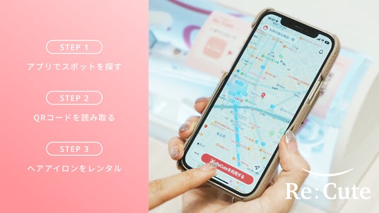 ReCuteは「美をインフラ化する」をミッションに掲げ、駅や商業施設に設置されたヘアアイロンのレンタルスポットを通じて、外出先でも気軽に髪を整えられる環境を提供するサービスです。