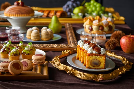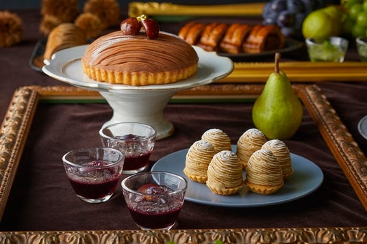 優しい甘さと香ばしいパイが織りなす「マロンミルフィーユ」、ほっくりとした風味が重なり合う「紫芋とスイートポテトのテリーヌ」、そしてみずみずしさを贅沢に包み込んだ「マスカットの大福」など、秋ならではの素材を引き立てたスイーツが並びます。見た目にも華やかで、一口ごとに秋の恵みを心ゆくまで堪能できます。