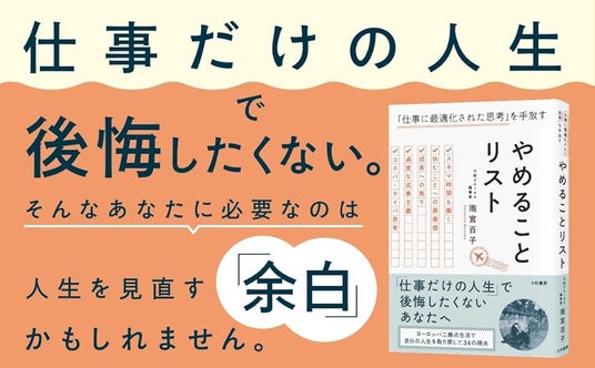 株式会社大和書房(本社:東京都文京区、代表取締役:大和 哲)は『やめることリスト 「仕事に最適化された思考」を手放す』(雨宮百子 :著)を2026年4月22日に発売いたします。