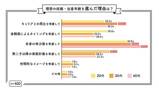 ■現代女性が考える、妊娠・出産の理想の年齢は?―20代は“将来の家族計画”、30代以降は“体力面”と“キャリア”を重視する傾向に