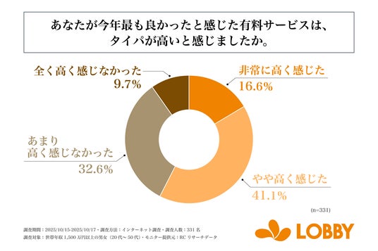 世帯年収1,500万円以上の男女の6割弱が、今年最も良かったと感じた有料サービスに対して「タイパが高い」と感じている