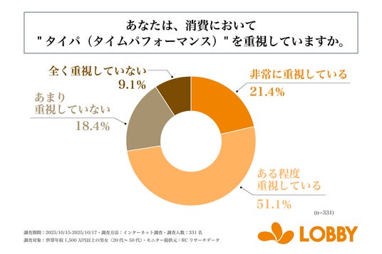 ・世帯年収1,500万円以上の男女の70%以上が、消費において"タイパ"を重視している