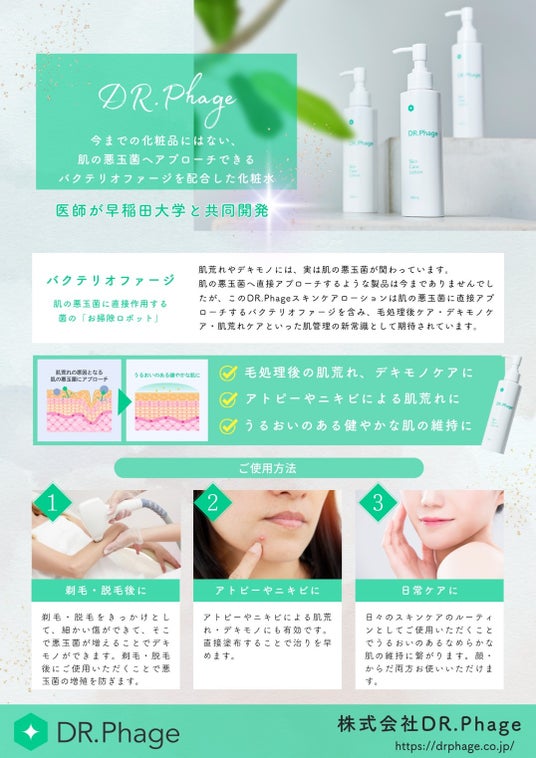 医師が開発した、バクテリオファージ配合、肌荒れ・デキモノ・毛処理後ケアの新常識、「DR.Phageスキンケアローション」販売開始