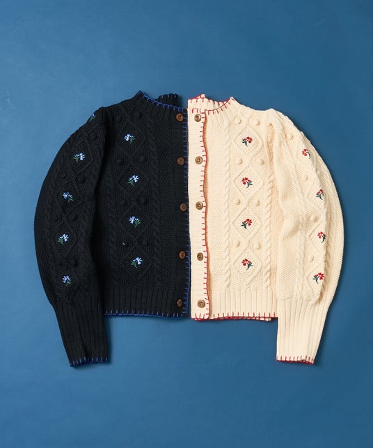 古着ライクなディティールが可愛らしい刺繍カーディガン。