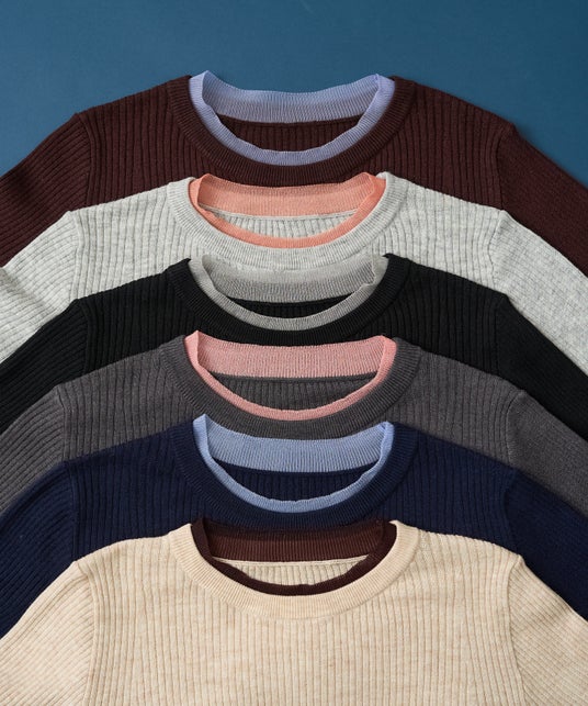 伸縮性のあるリブ編みで、フィット感のあるサイジング。