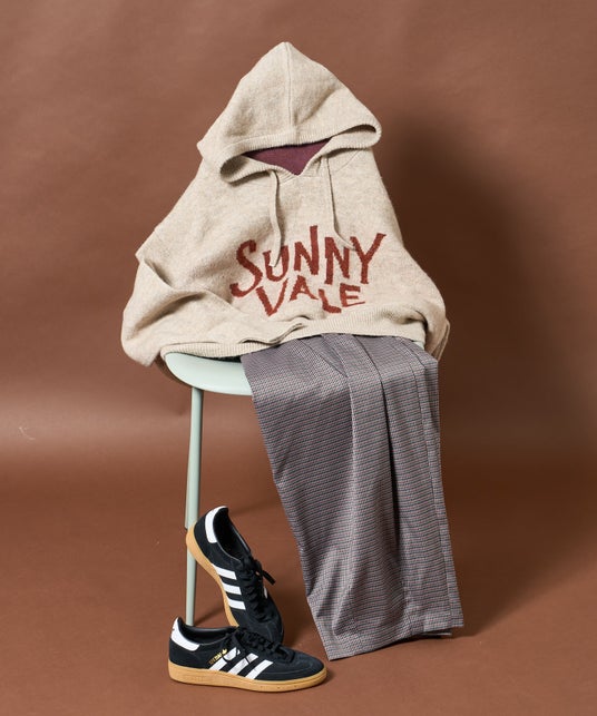ロゴをあしらいカジュアルな雰囲気に仕上げたニットフーディー。