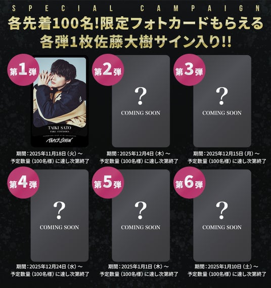更に各弾先着100枚で配布される中の1枚が、佐藤大樹直筆サイン入りのカードとなっております。