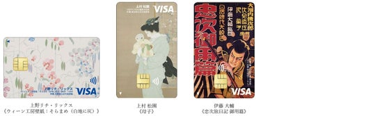 共創先の3法人が運営するミュージアムが収蔵する文化芸術、文化財、標本・資料の中から厳選し、券面にいたしました。お客さまが選んだ券面デザインに応じて、それぞれの法人へ寄付ができます。