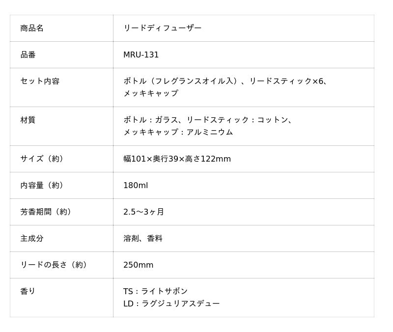 「リードディフューザー」 MRU-131