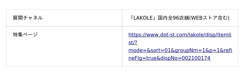 全国96店舗展開(2025年9月末時点WEBストアを含む) <公式WEBストア and ST> https://www.dot-st.com/lakole/ <Instagram> https://instagram.com/lakole_official/