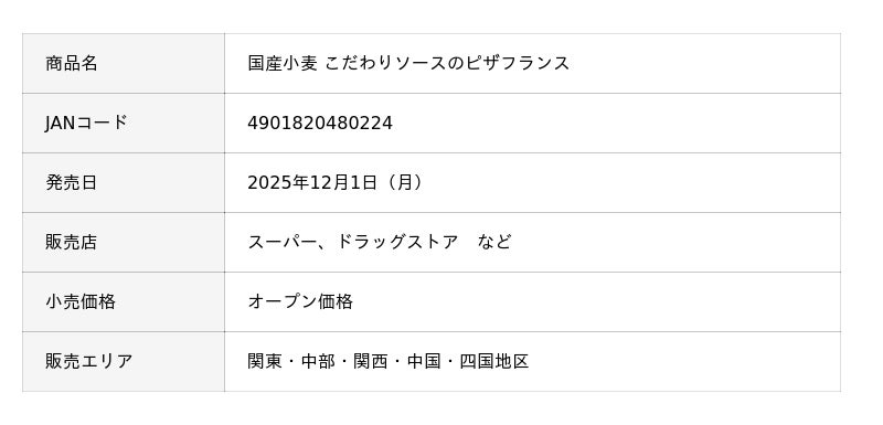 敷島製パン株式会社(Pasco)は、「ArtisanSelection」シリーズの新商品「国産小麦 こだわりソースのピザフランス」を、2025年12月1日(月)より、関東・中部・関西・中国・四国地区にて発売します。