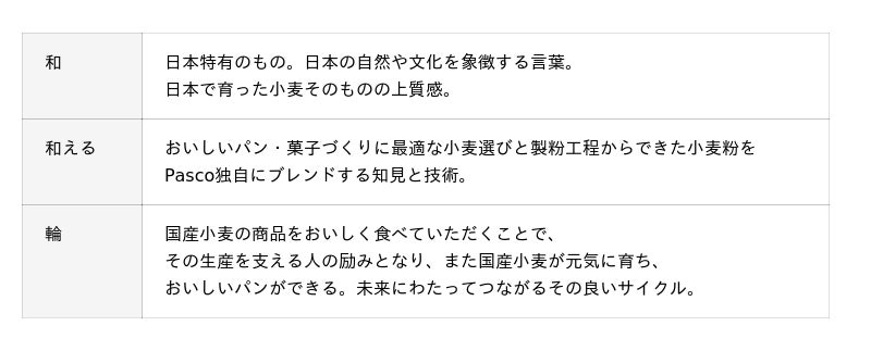 シリーズ全品で国産小麦の小麦粉を100%使用(手粉を除く)しており、パッケージには、Pascoがこれまで培ってきた知見や技術が詰まった国産小麦商品の証である『和小麦』ロゴをデザインしています。