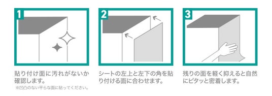シールタイプと異なり、貼り直しがしやすいのが特長。失敗しにくく、模様替えや引っ越し時にも取り外して再利用できます。
