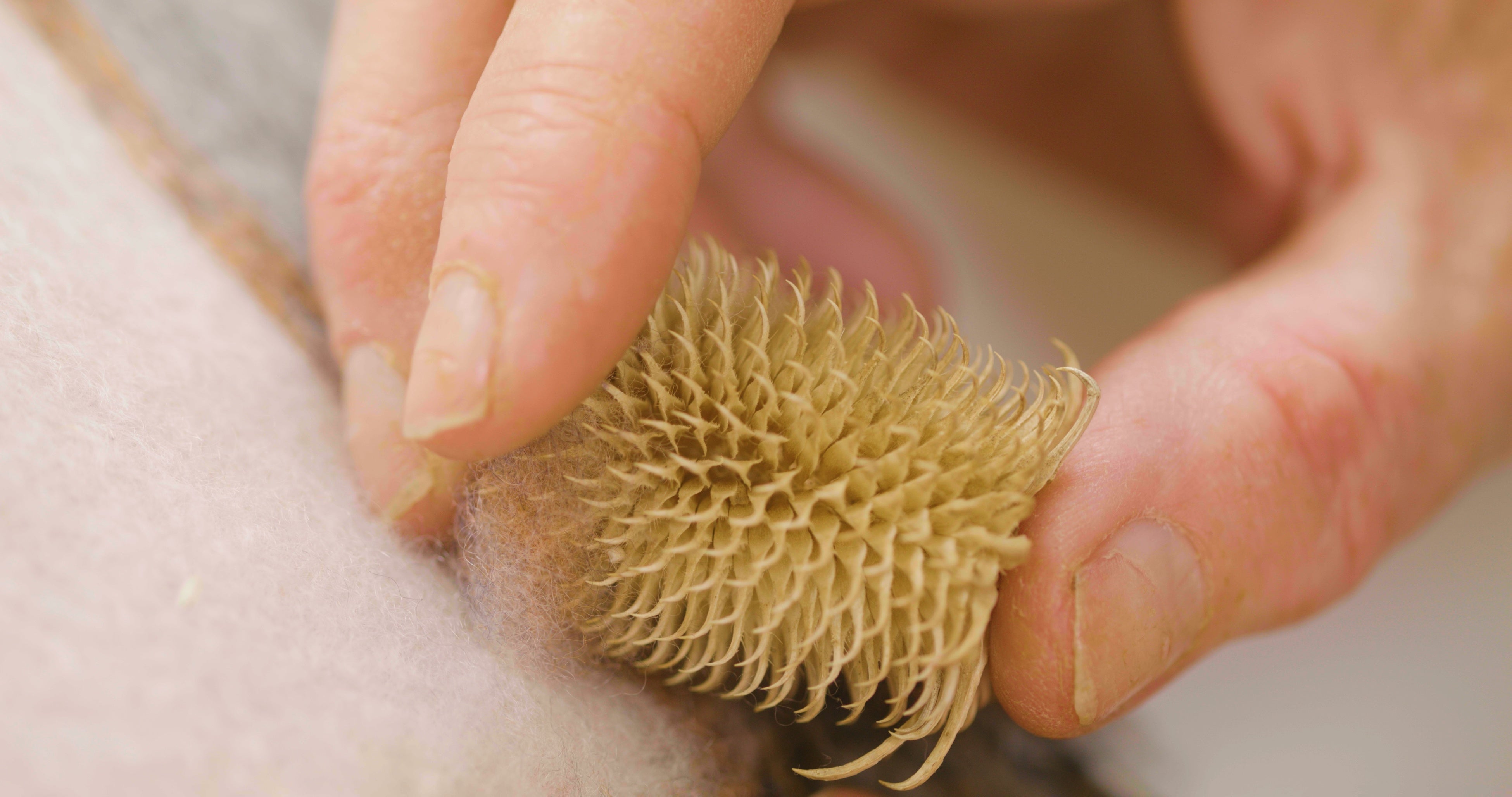 美しい毛並みを生む手作業の仕上げに使われるイタリア産乾燥チーゼル