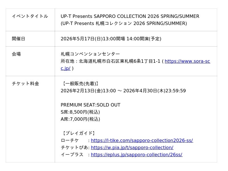 ■『UP-T Presents SAPPORO COLLECTION 2026 SPRING/SUMMER』について