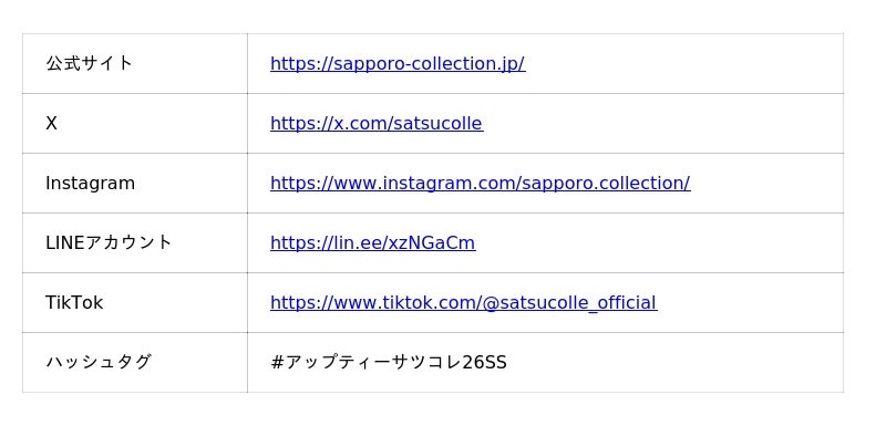 『アップティー サツコレ2026SS』公式サイト: https://sapporo-collection.jp/
