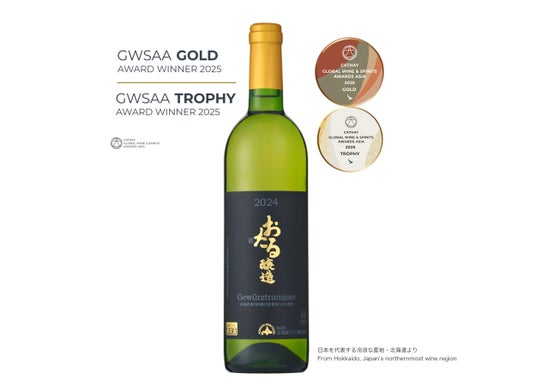 北海道ワイン株式会社(本社:北海道小樽市、以下当社)は、2025年11月6日(木)に香港で発表された国際ワインコンペティション「GLOBAL WINE & SPIRITS AWARDS ASIA 2025(GWSAA2025)」において、自社製造の白ワイン『おたる ゲヴュルツトラミネール 2024』が金賞を受賞し、さらに出品された日本産ワインの中で最高評価を得たワインに授与される「Best Wine From Japan」トロフィーを獲得したことをお知らせいたします。