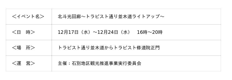 北斗光回廊~トラピスト通り並木道ライトアップ~ 開催概要