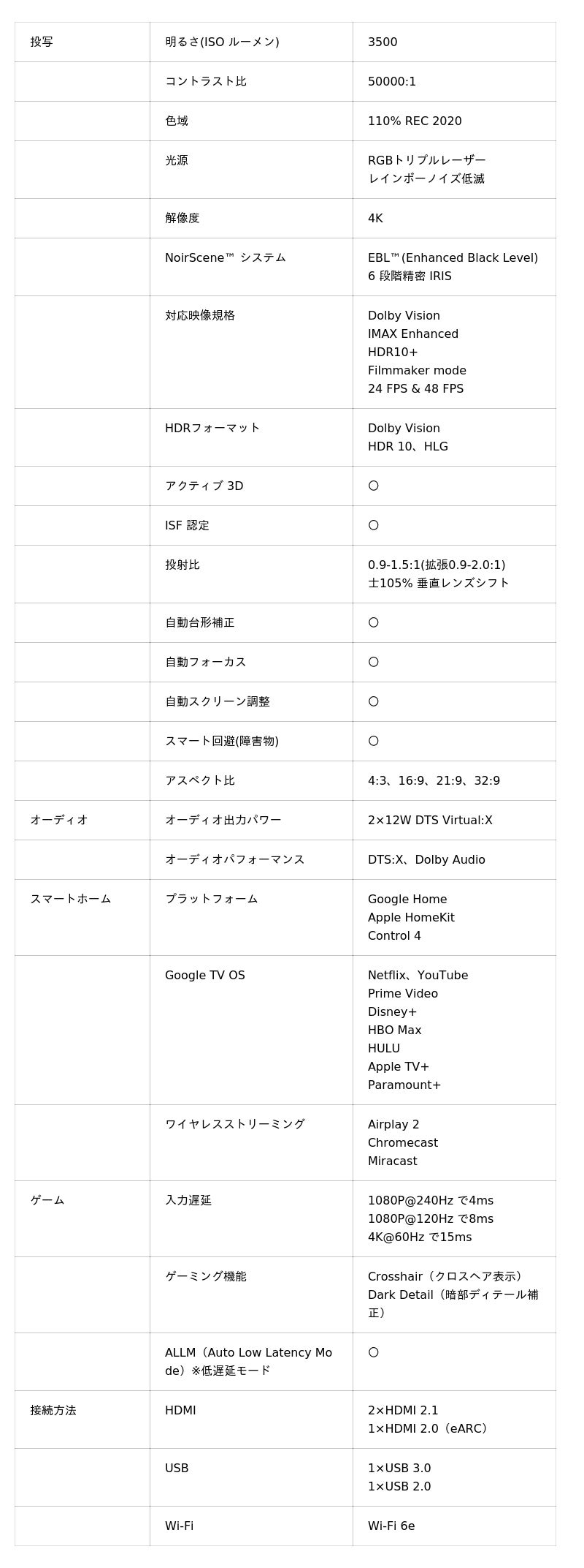 IMAX Enhanced、Dolby Vision、HDR10+、Filmmaker Mode、Active 3D、HDR 10+ 、Dynamic Tone Mappingに対応し、映画館の質感と迫力を自宅で再現。オーディオは 2×12WのDTS Virtual:X、DTS:X、Dolby Audioに対応し、映像と音の両面で没入感を高めます。
