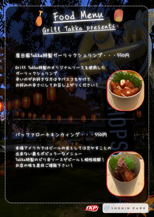 株式会社ティーケーピー(本社:東京都新宿区、代表取締役社長:河野 貴輝、以下TKP)が運営するリゾート型複合施設「SHONIN PARK」は、初のイベントとして「秋の縁日ビアガーデン」を2025年10月11日(土)~26日(日)の期間限定で開催いたします。開放的な野外空間で、限定フードやドリンクを味わいながら家族や友人と秋の夜風を楽しむひとときをお届けします。