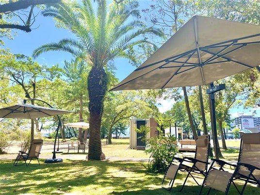 「SHONIN PARK」は2025年7月にオープンした、大分県別府市の複合型リゾート施設です。エリア内には体験型宿泊施設「ISHINOYA別府」、砂湯を備えた温浴施設「Sand SPA(別府海浜砂湯)」、地元食材を活かしたグリル料理を提供するリゾートレストラン「Grill Takka」、飲食・物販など多様な魅力が集まるショップテナントエリアを展開し、滞在・癒し・食を通じて別府の魅力を五感で体感できる空間となっております。