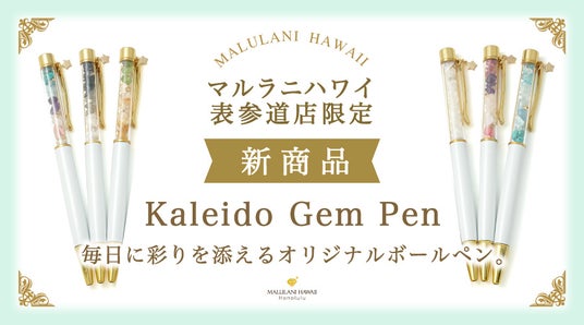 ハワイ発の天然石アクセサリーブランド「Malulani Hawaii(マルラニハワイ)」表参道店では、天然石をガラスに閉じ込めたオリジナルボールペン「Kaleido Gem Pen」を発売開始いたしました。